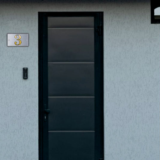 Premium Personalized Street Sign and House Number S1 Mini Brushed Steel Gold Background