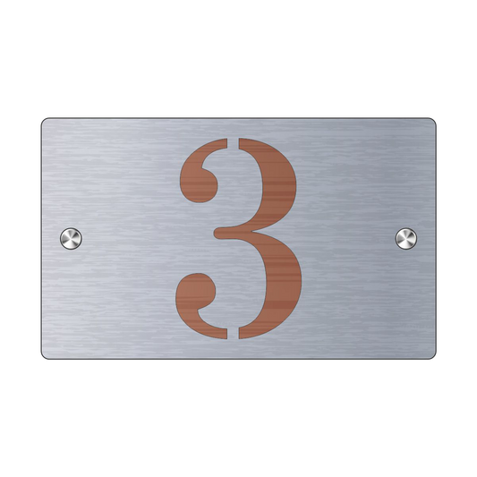 Premium Personalized Street Sign and House Number S1 Mini Brushed Steel Copper Background