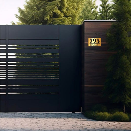 Premium S1 Mini Personalized Street Sign and House Number Black Steel Background