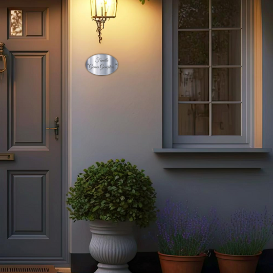 Premium Personalized Street Sign and House Number S1 Mini Brushed Steel Black Background