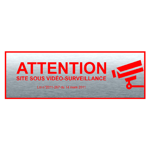 Adhesive Video Surveillance Plate Steel and Red Effect 200x66mm